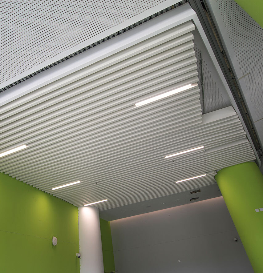 Our acoustics systems offered consist of a unique combination of highly effective sound absorption with flexibility in design. They aim to reduce and control the reverberation time. When controlling the reverberation time of sound waves, the results will create a pleasant acoustic room climate.